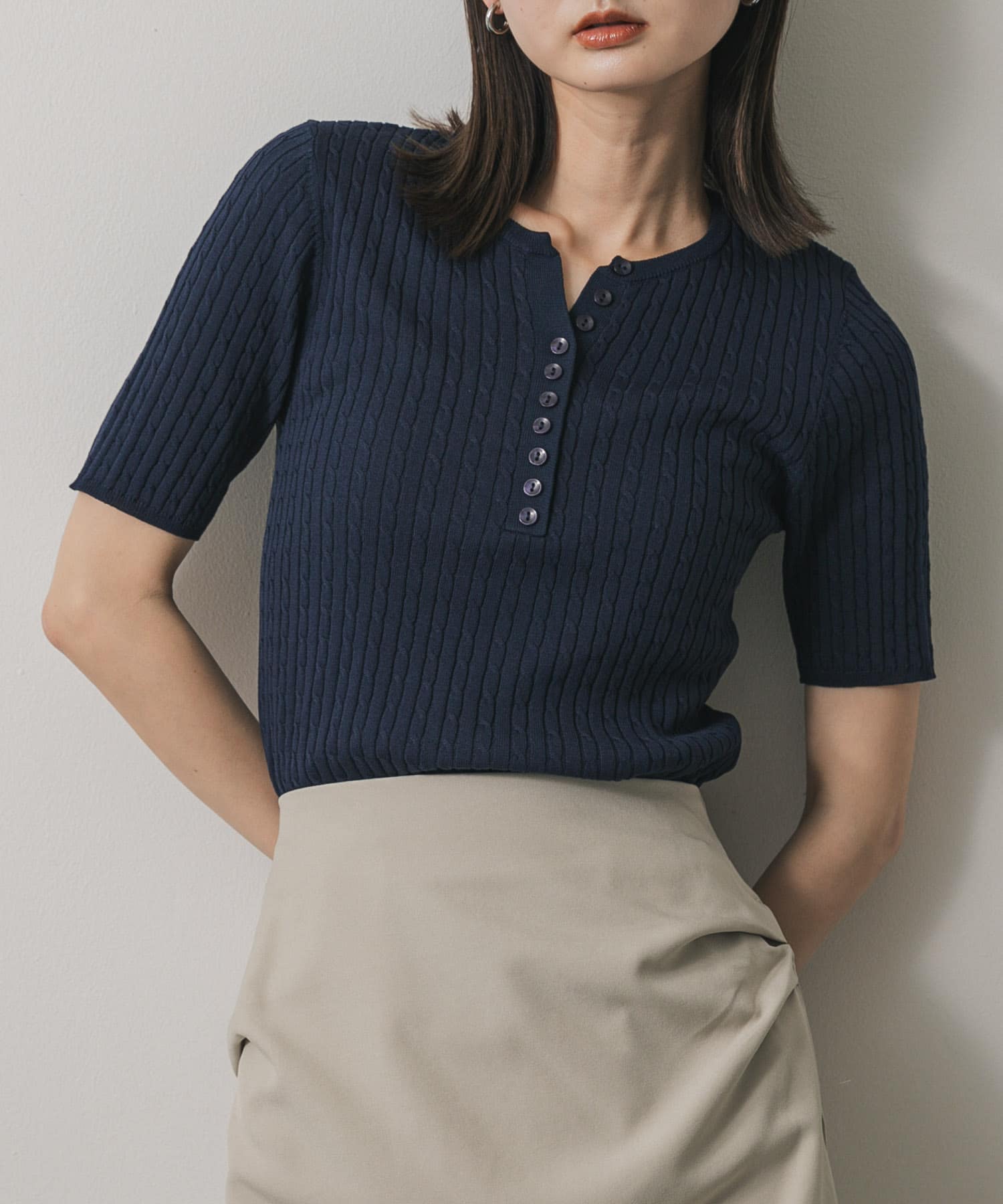 亨利領迷你麻花針織上衣