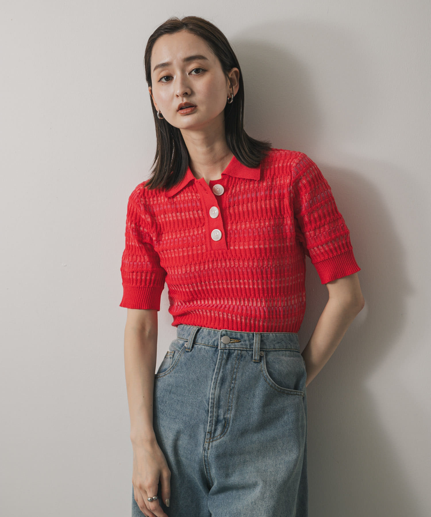 鏤空波浪滾邊上衣