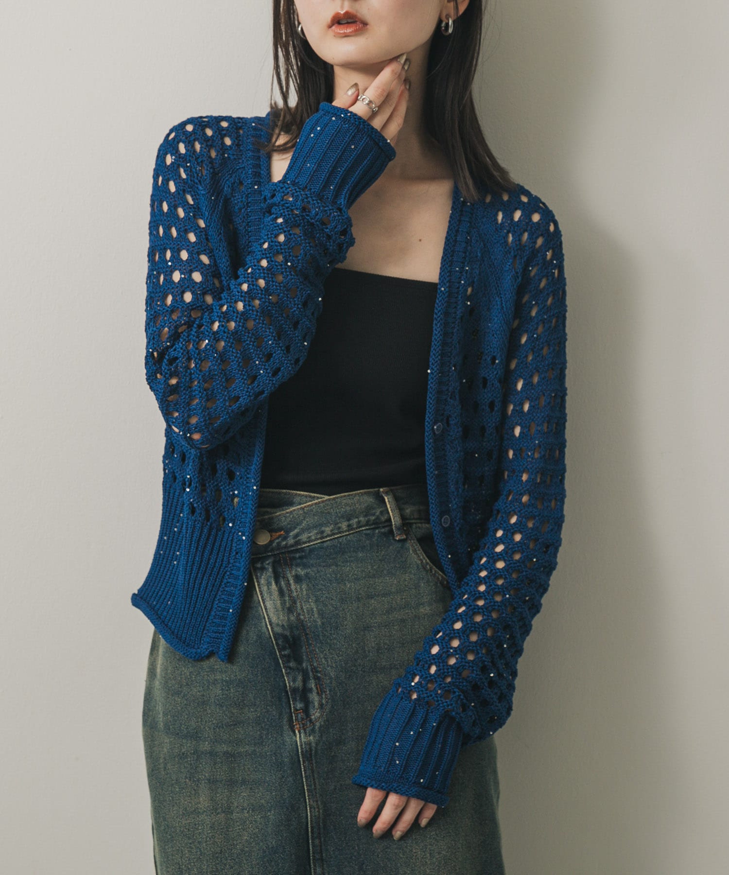 金蔥網眼開襟衫