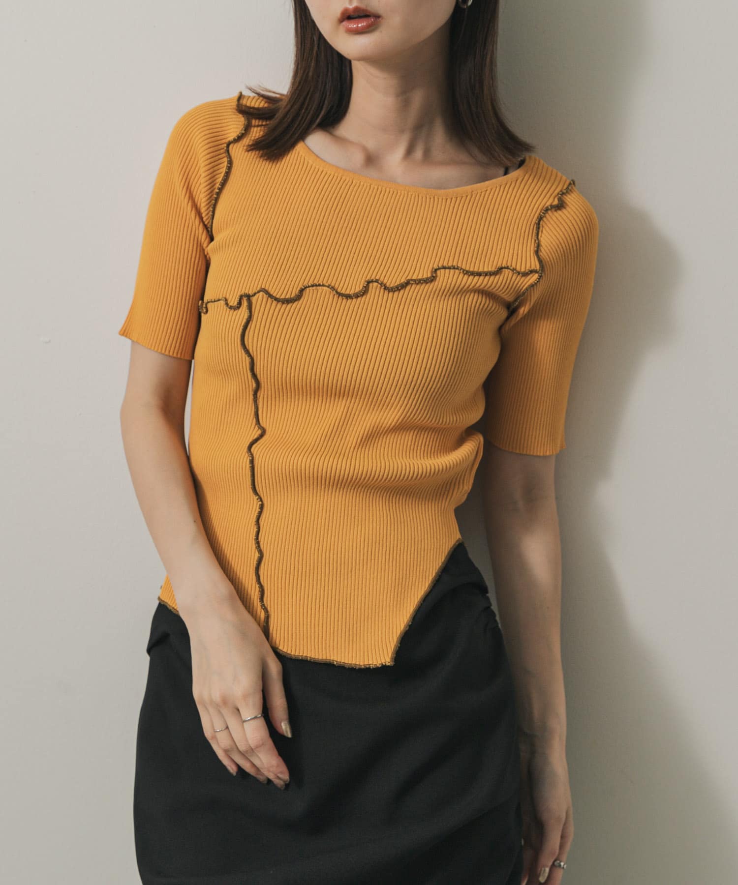 不對稱捲邊針織上衣