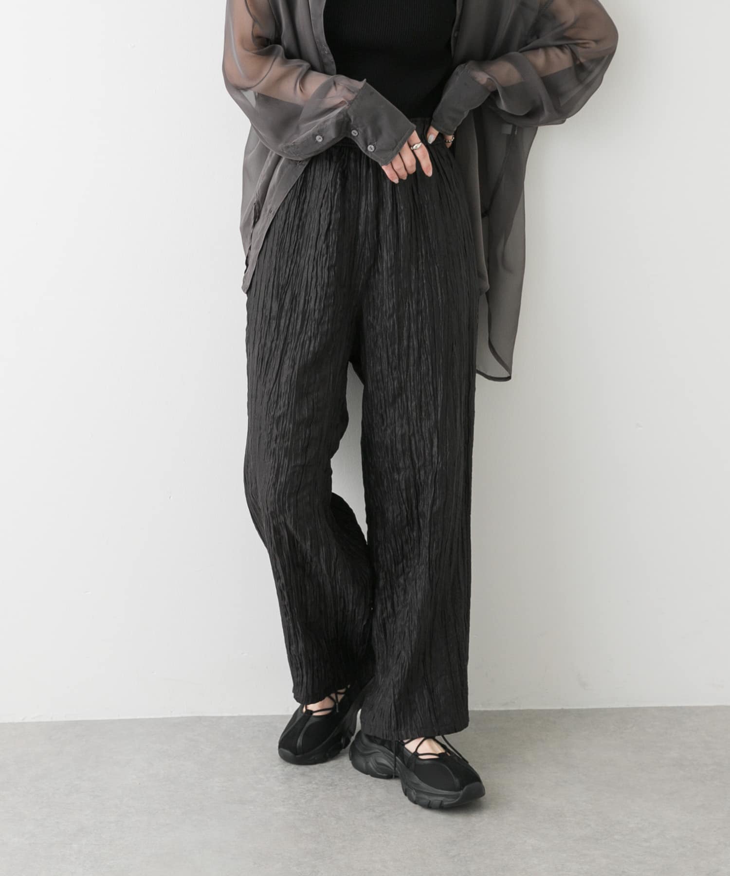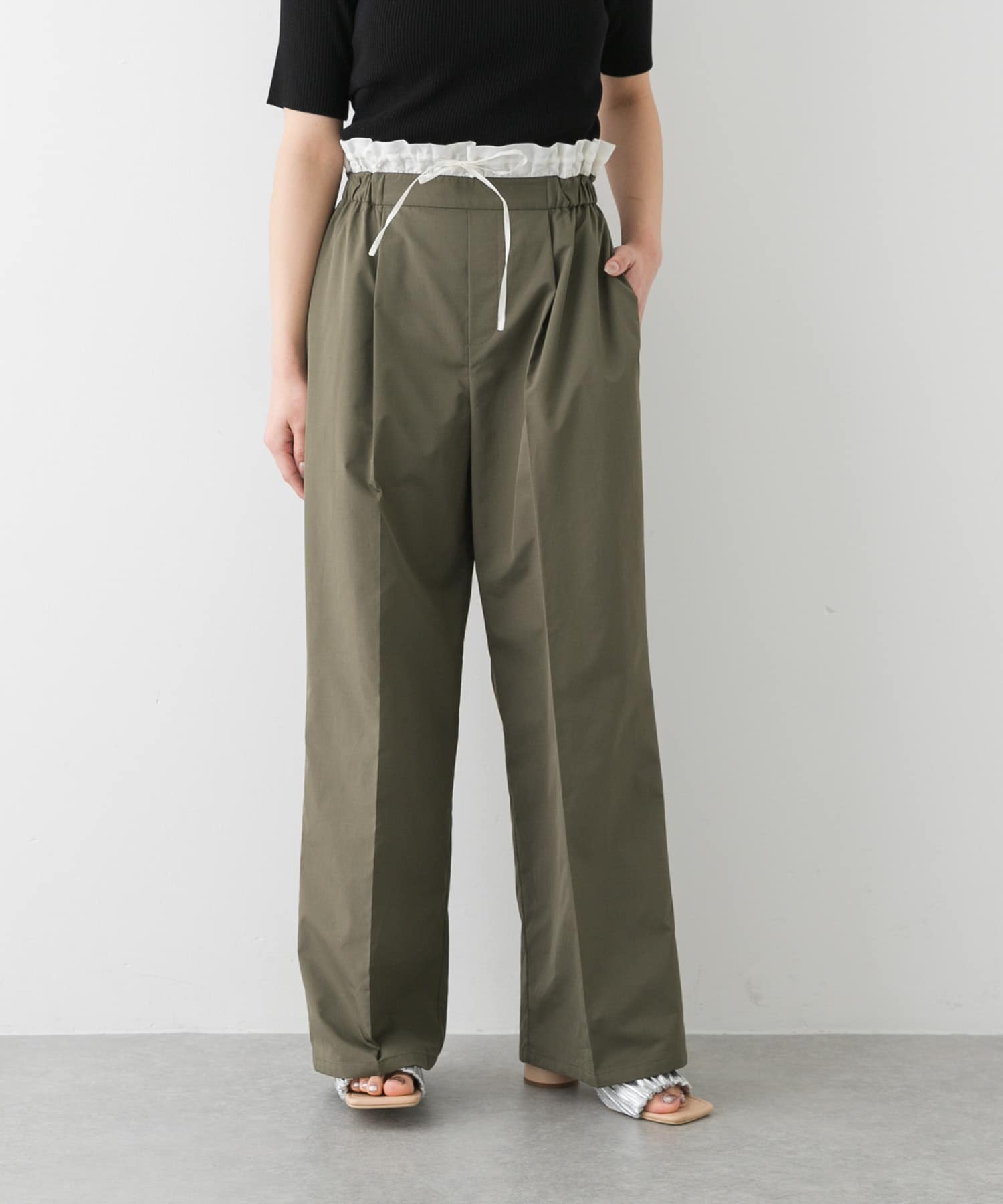 皺褶休閒長褲