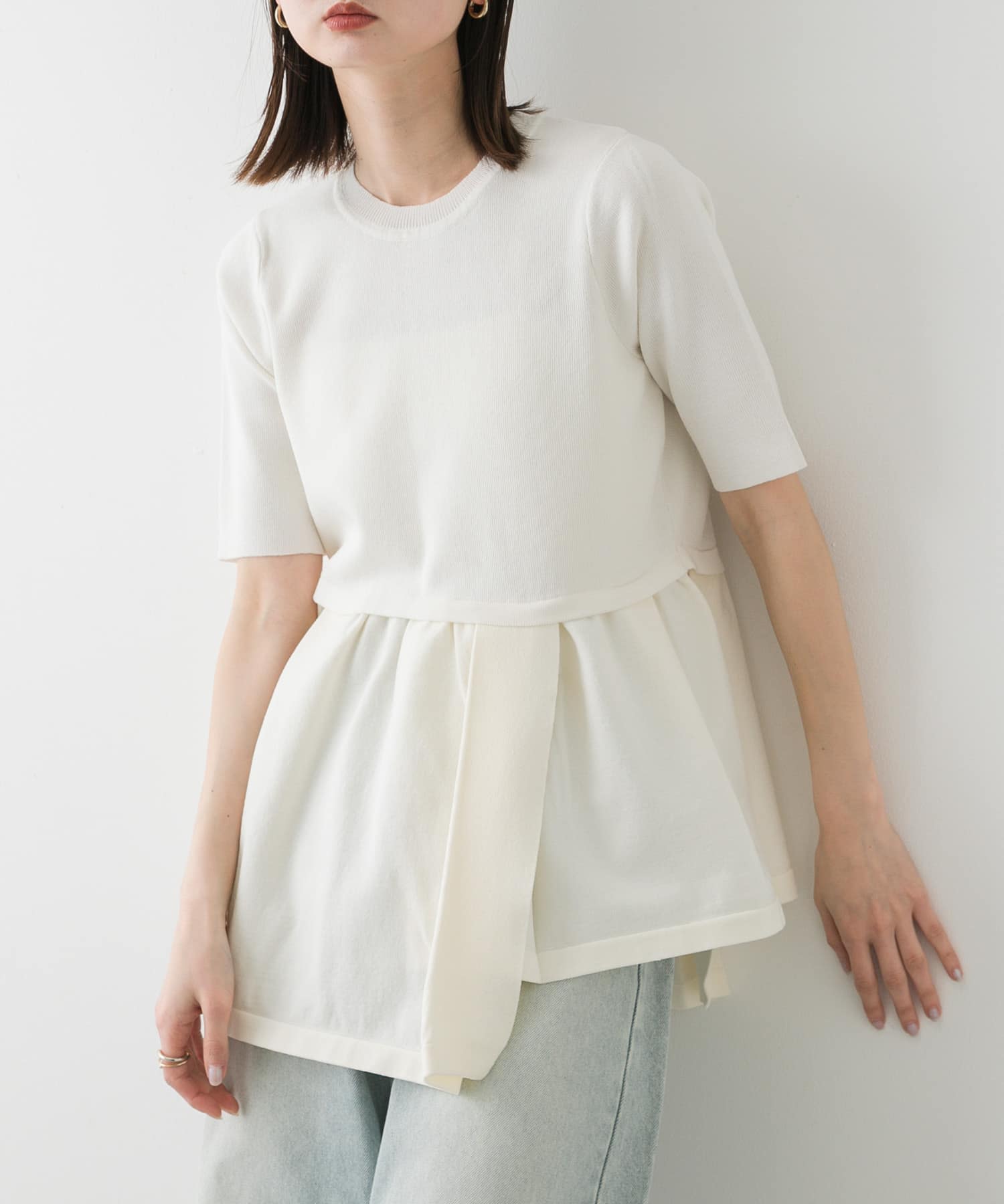 不對稱荷葉下擺針織上衣