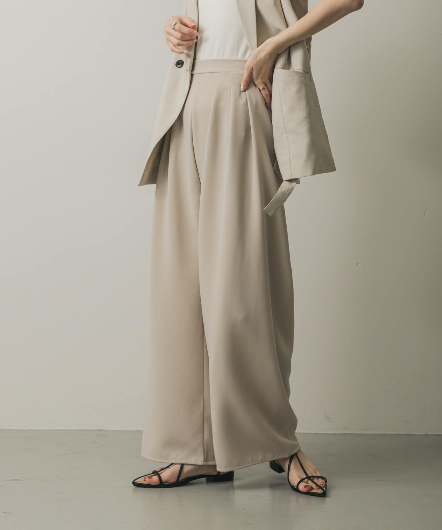 打褶斜紋緞面長褲