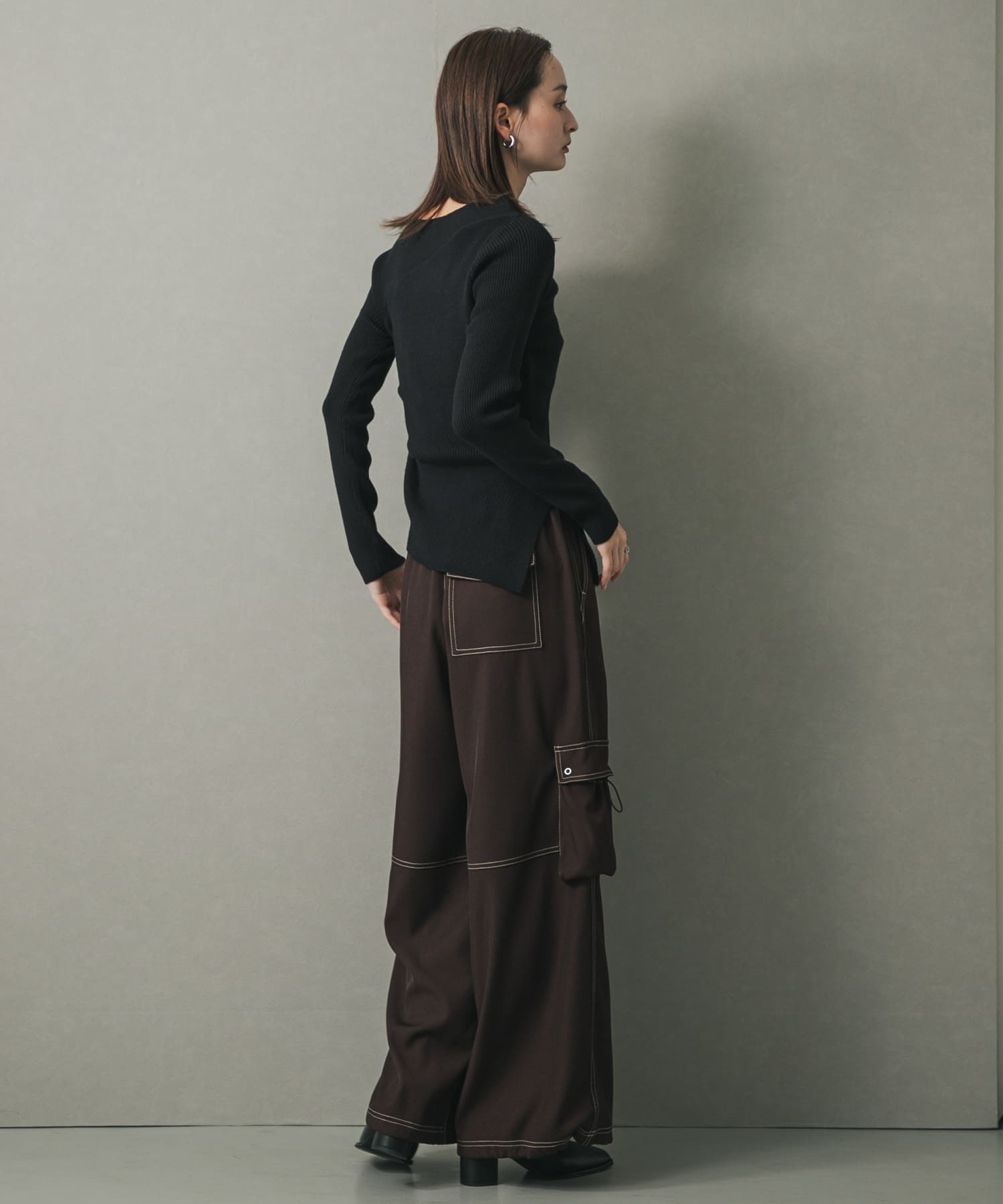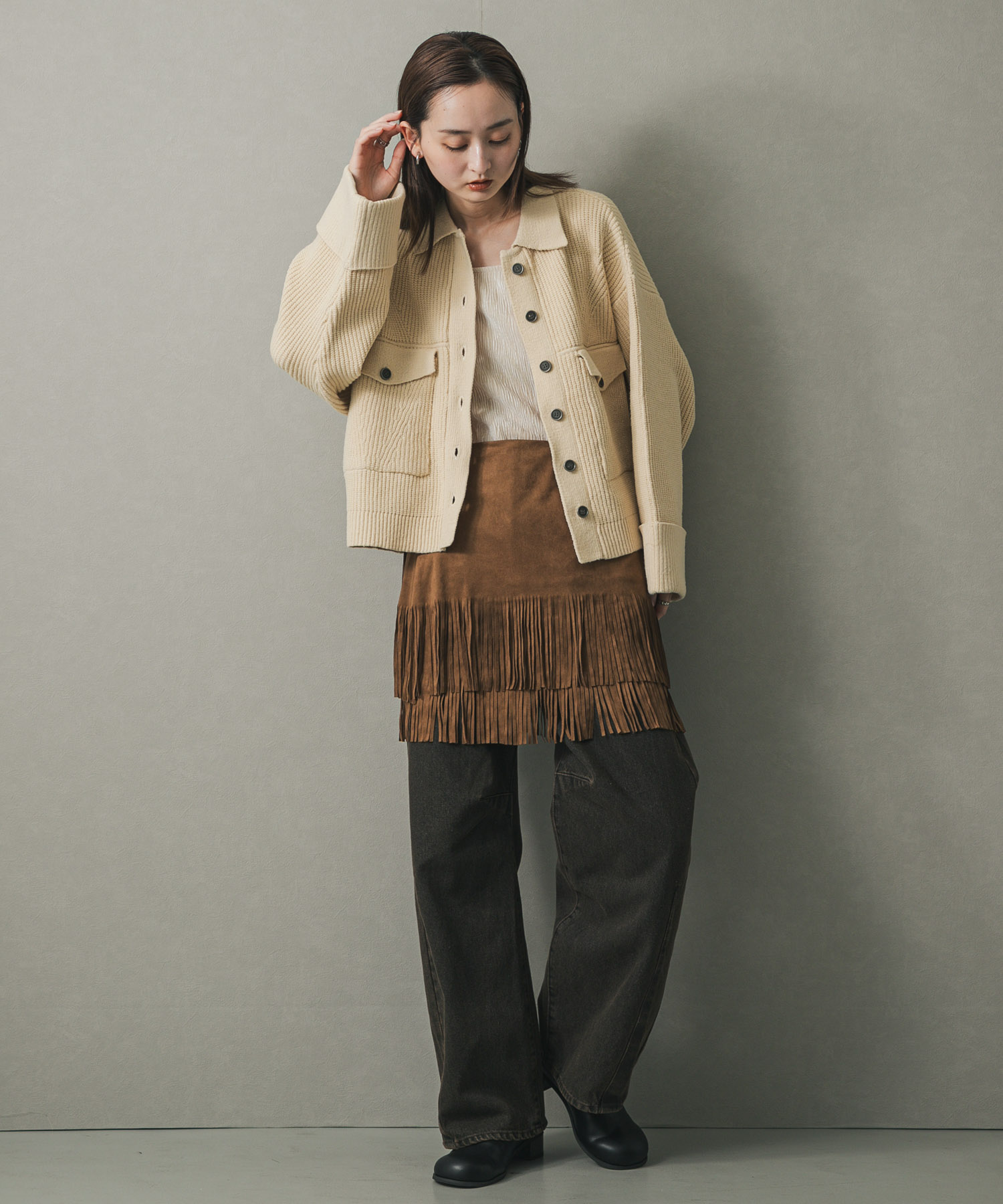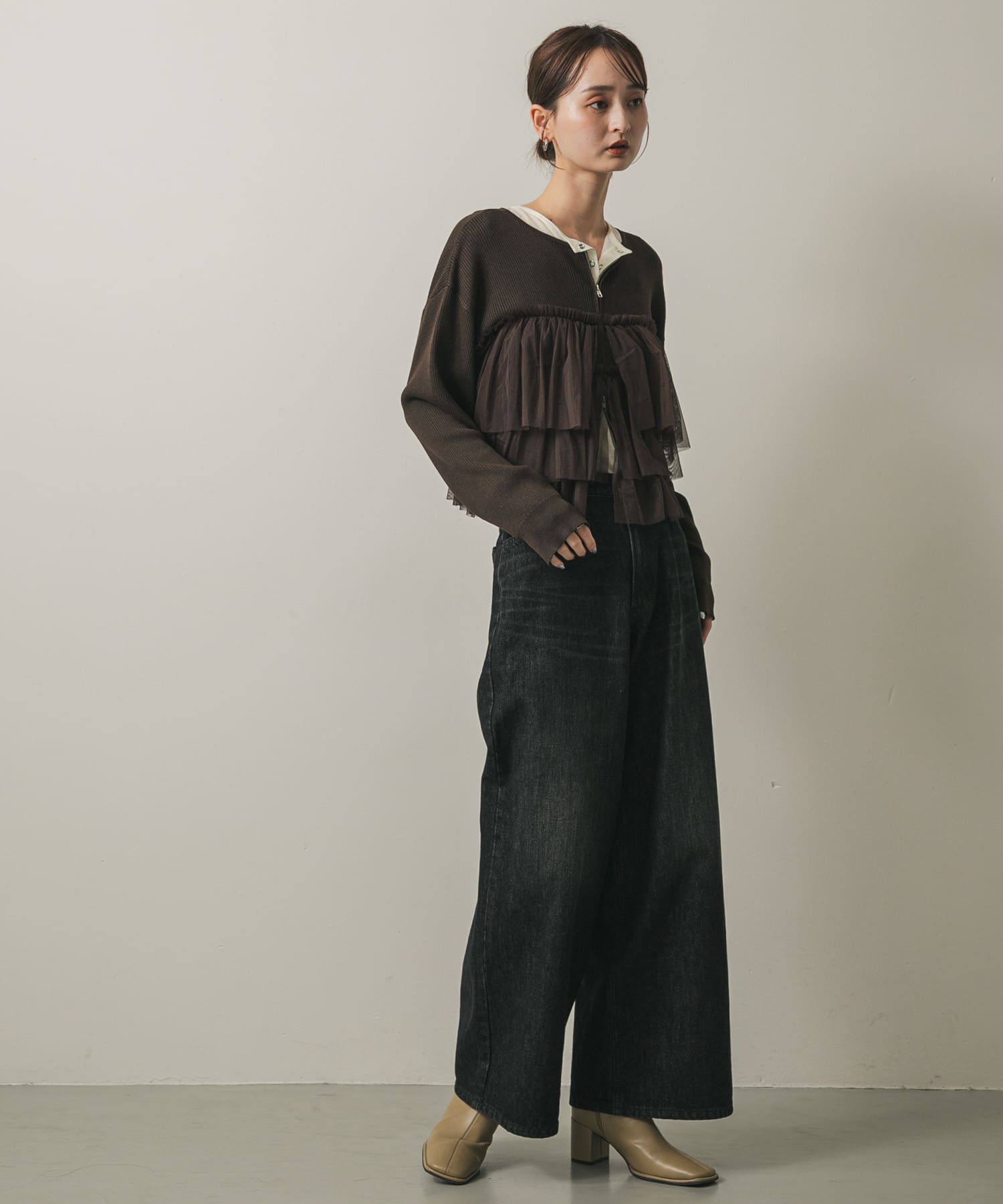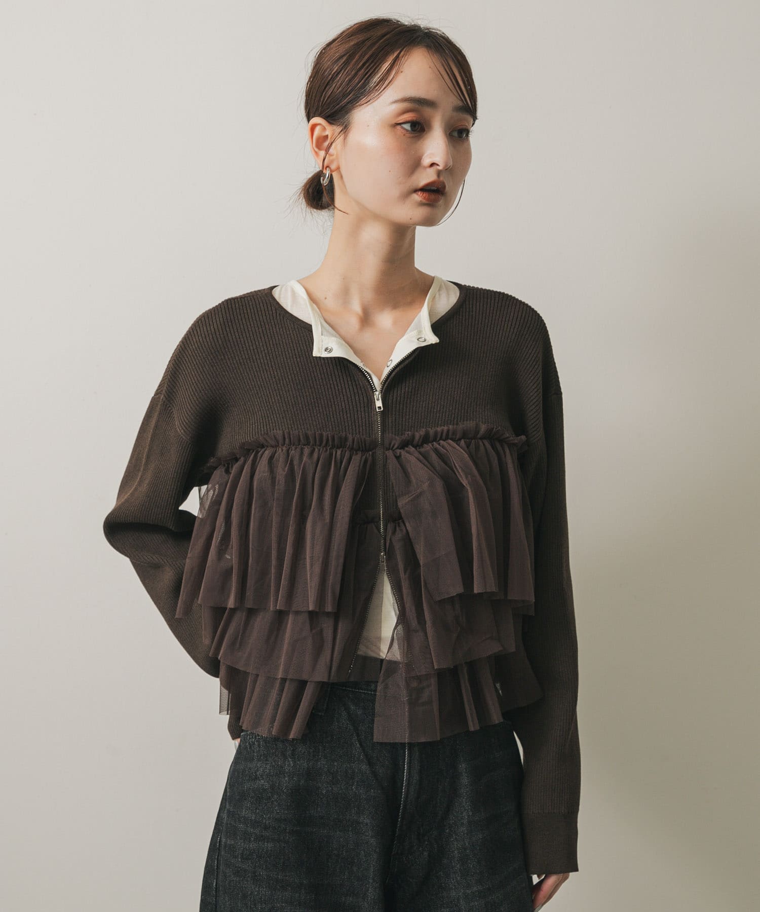 雙拉鍊荷葉針織開襟衫OFF WHITE