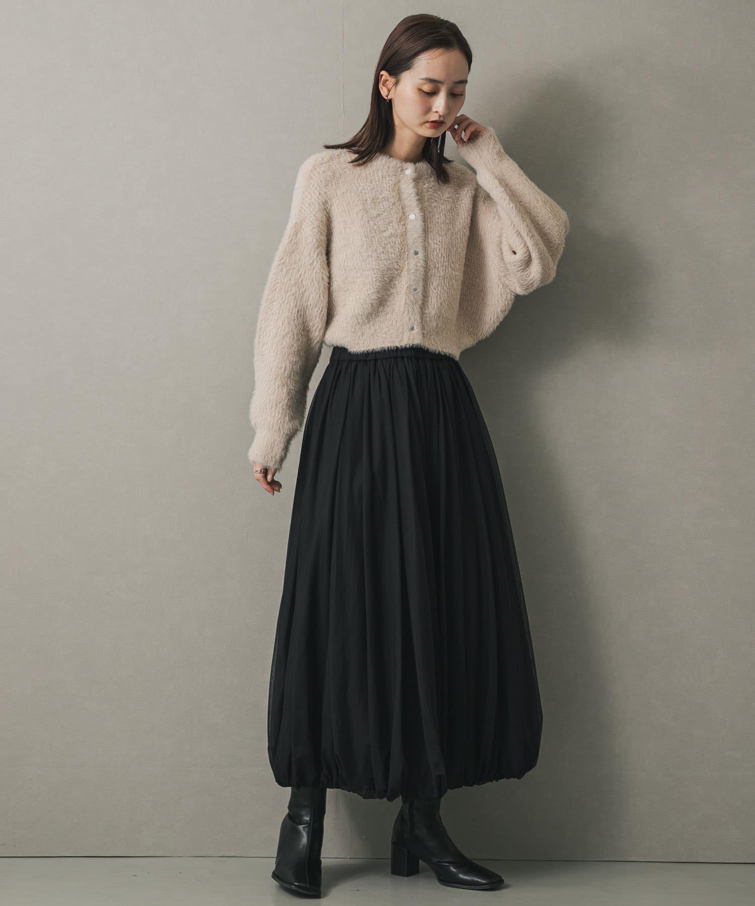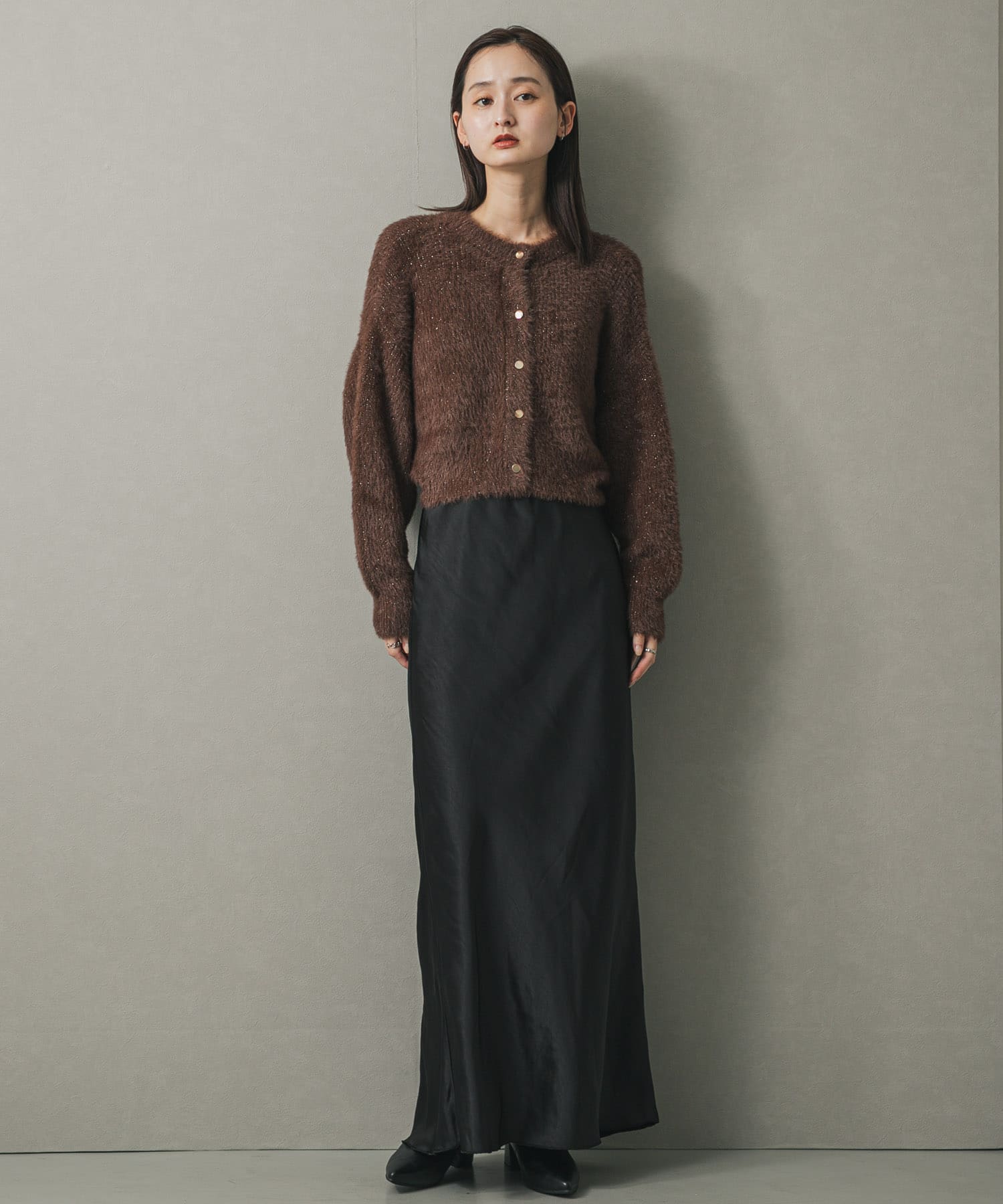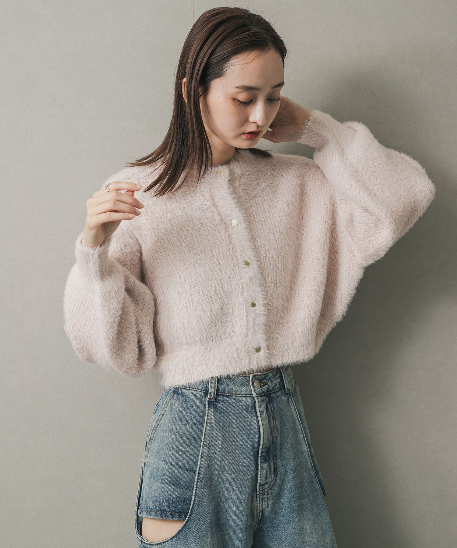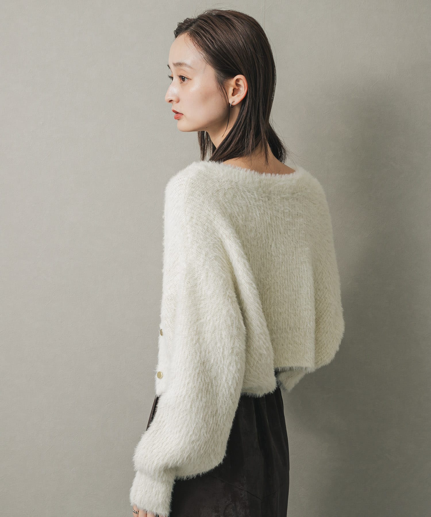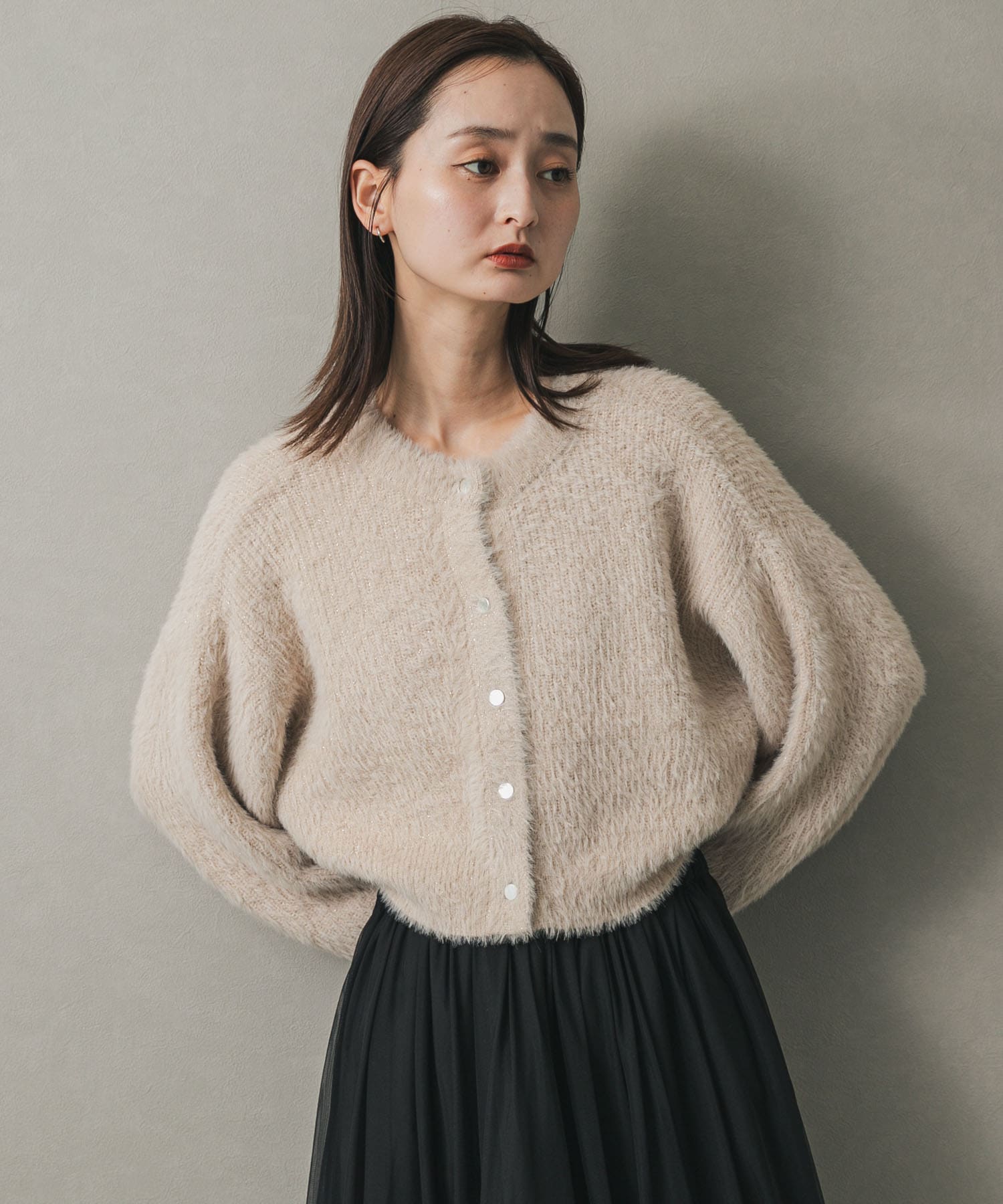 金蔥毛絨短版開襟衫LIGHT BEIGE