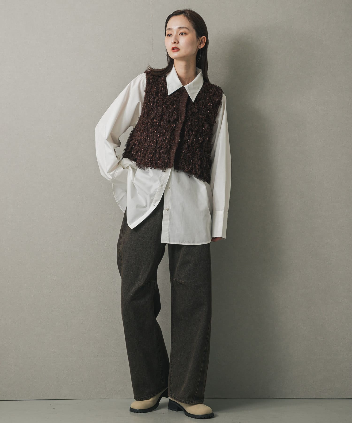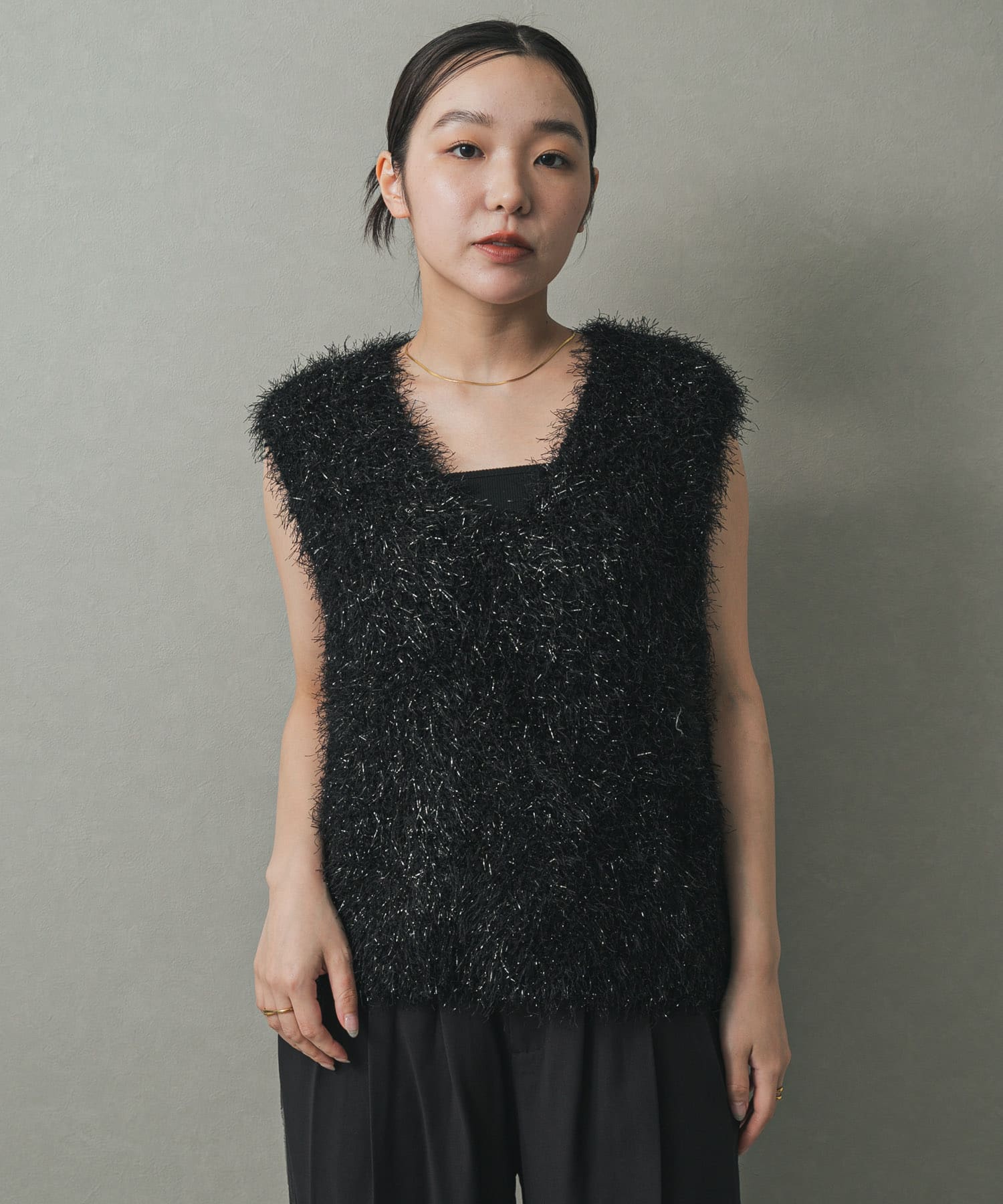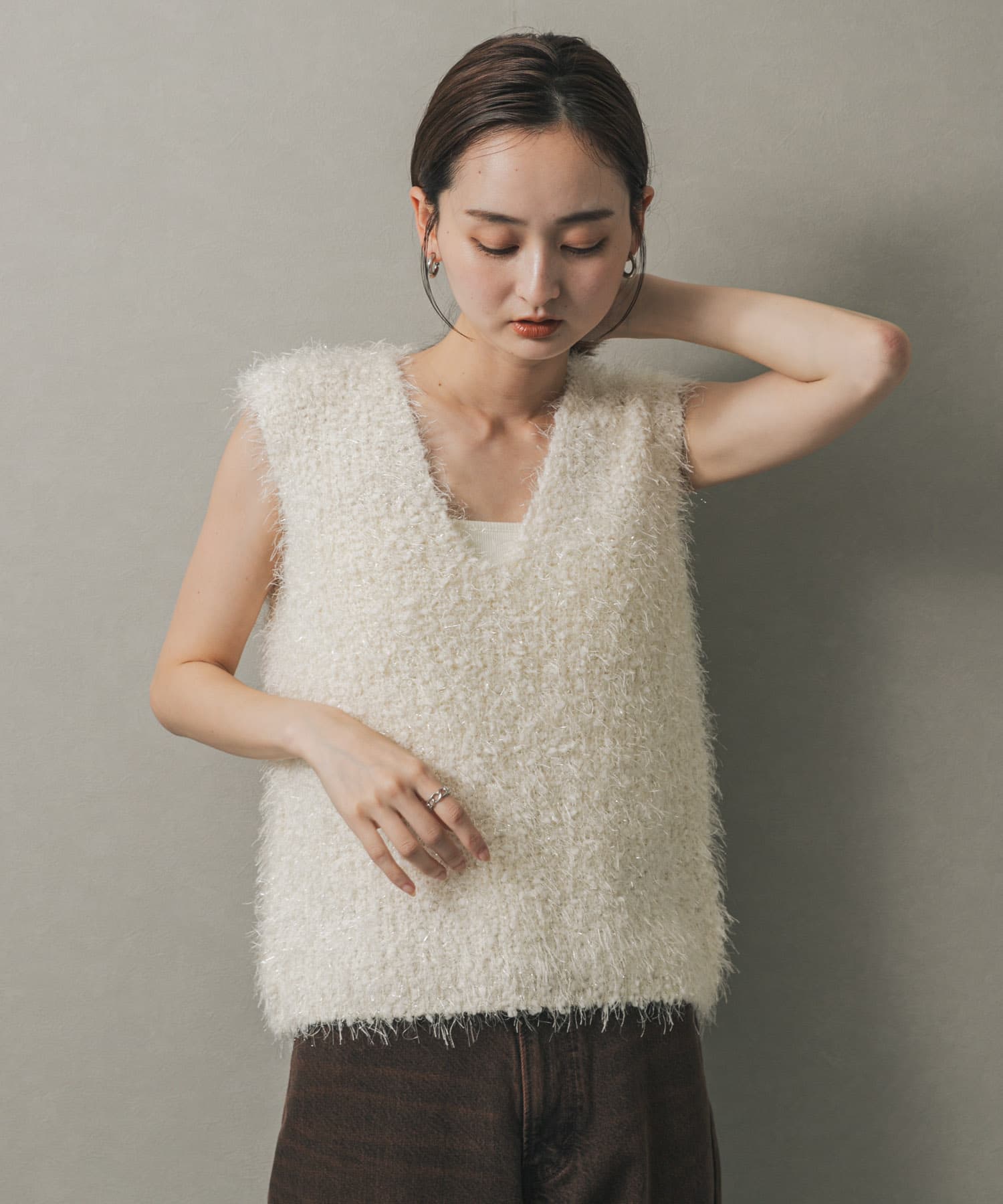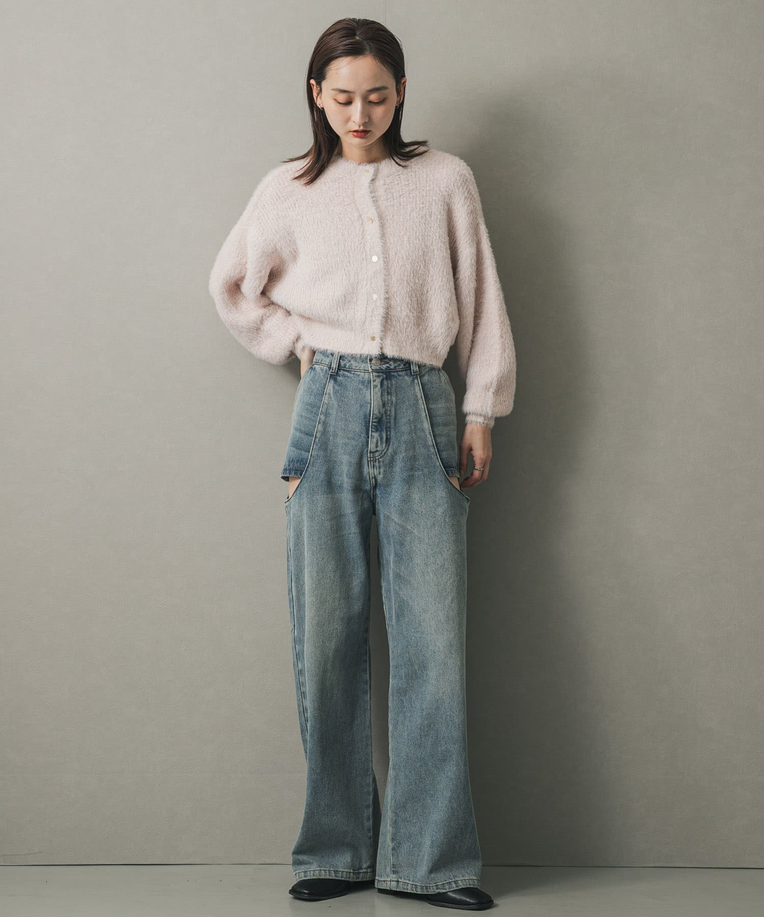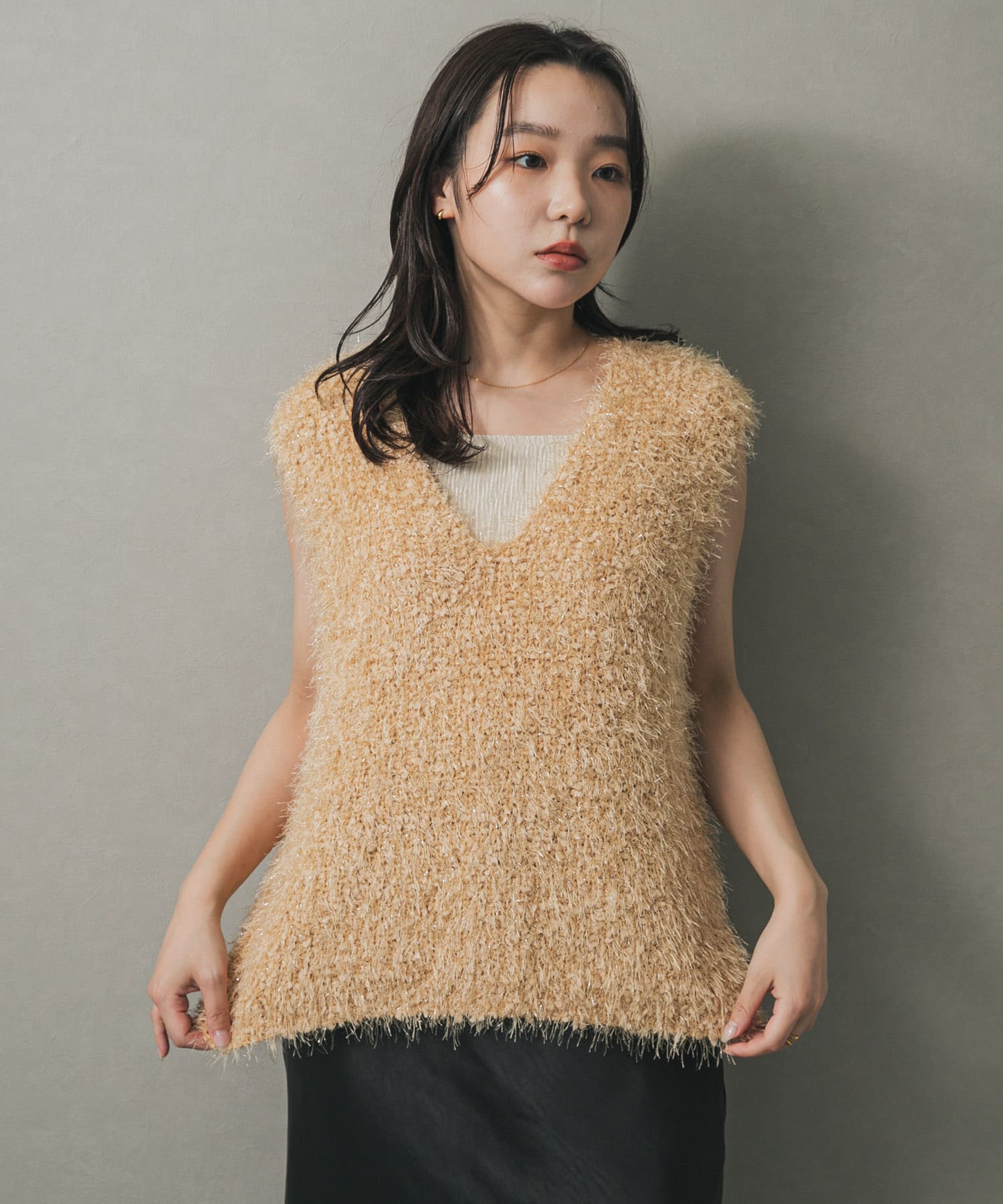 金蔥毛絨短版開襟衫LIGHT BEIGE