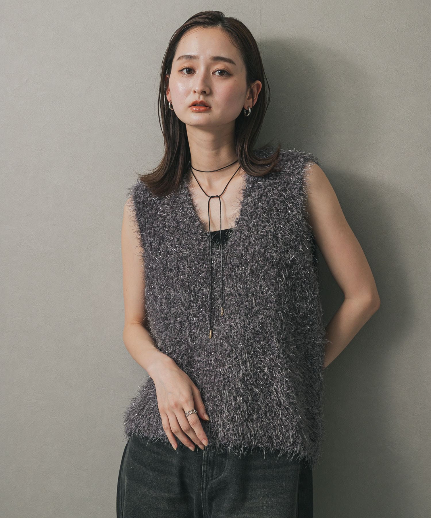 金蔥毛絨短版開襟衫CHARCOAL GRAY