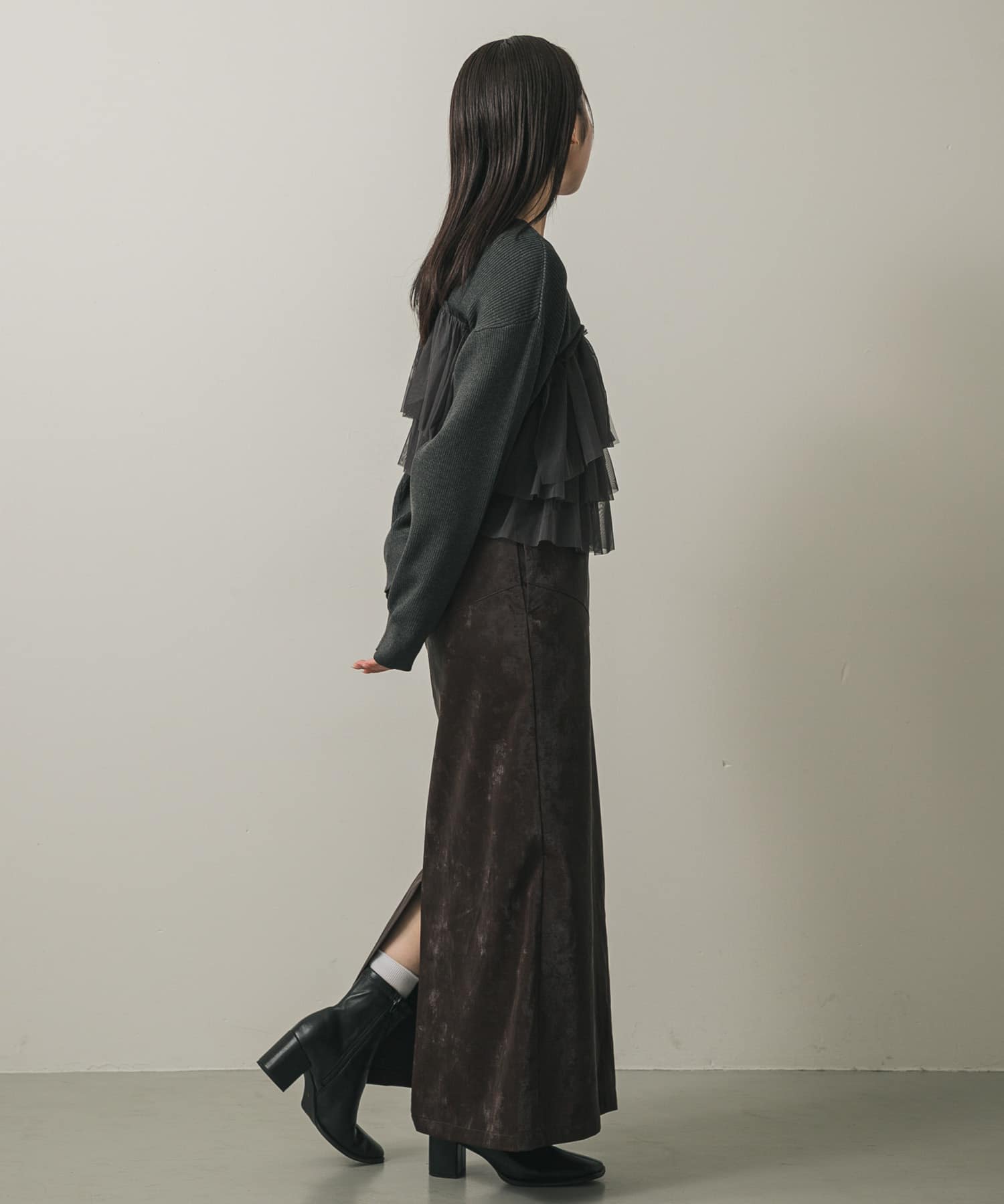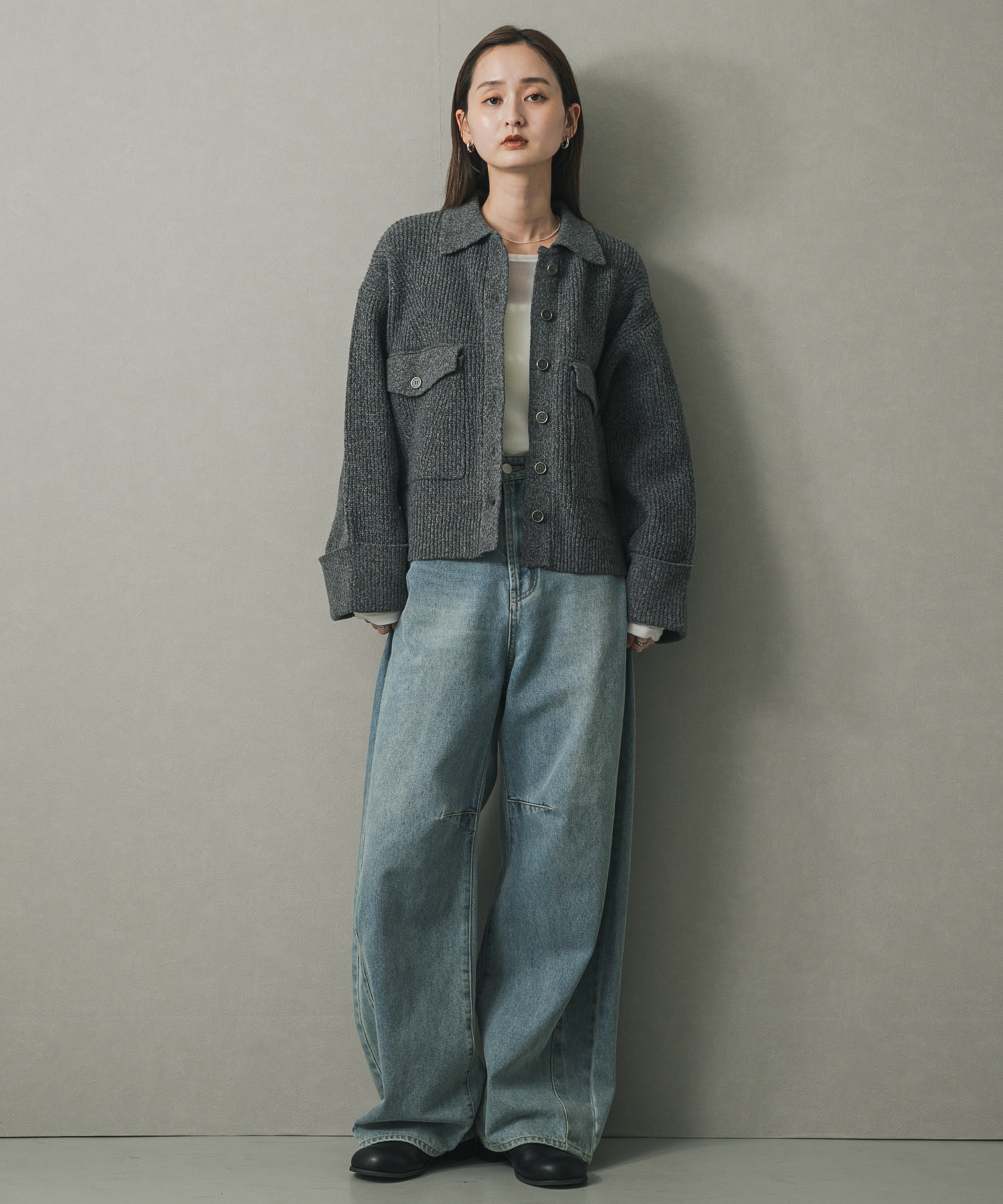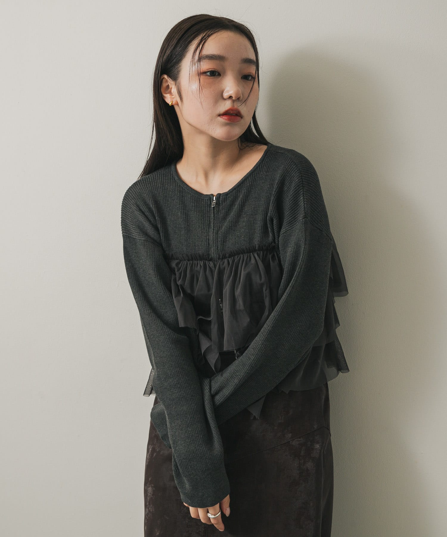 雙拉鍊荷葉針織開襟衫CHARCOAL GRAY